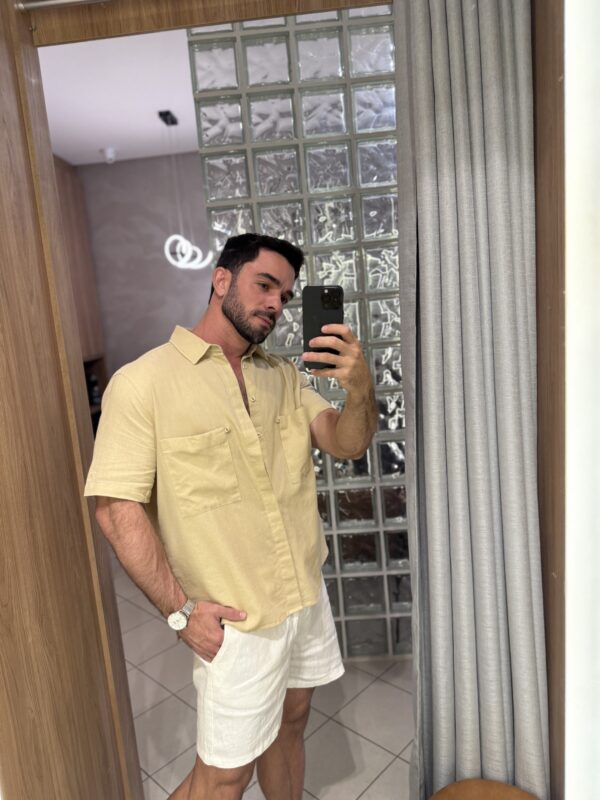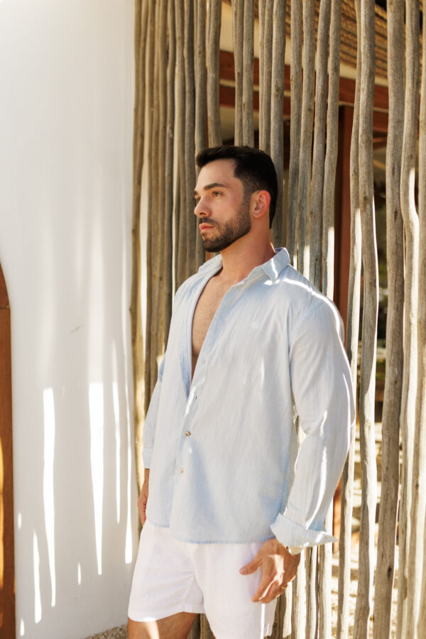 Camisa confeccionada 100% em algodão, com toque e textura muito similar ao puro linho.