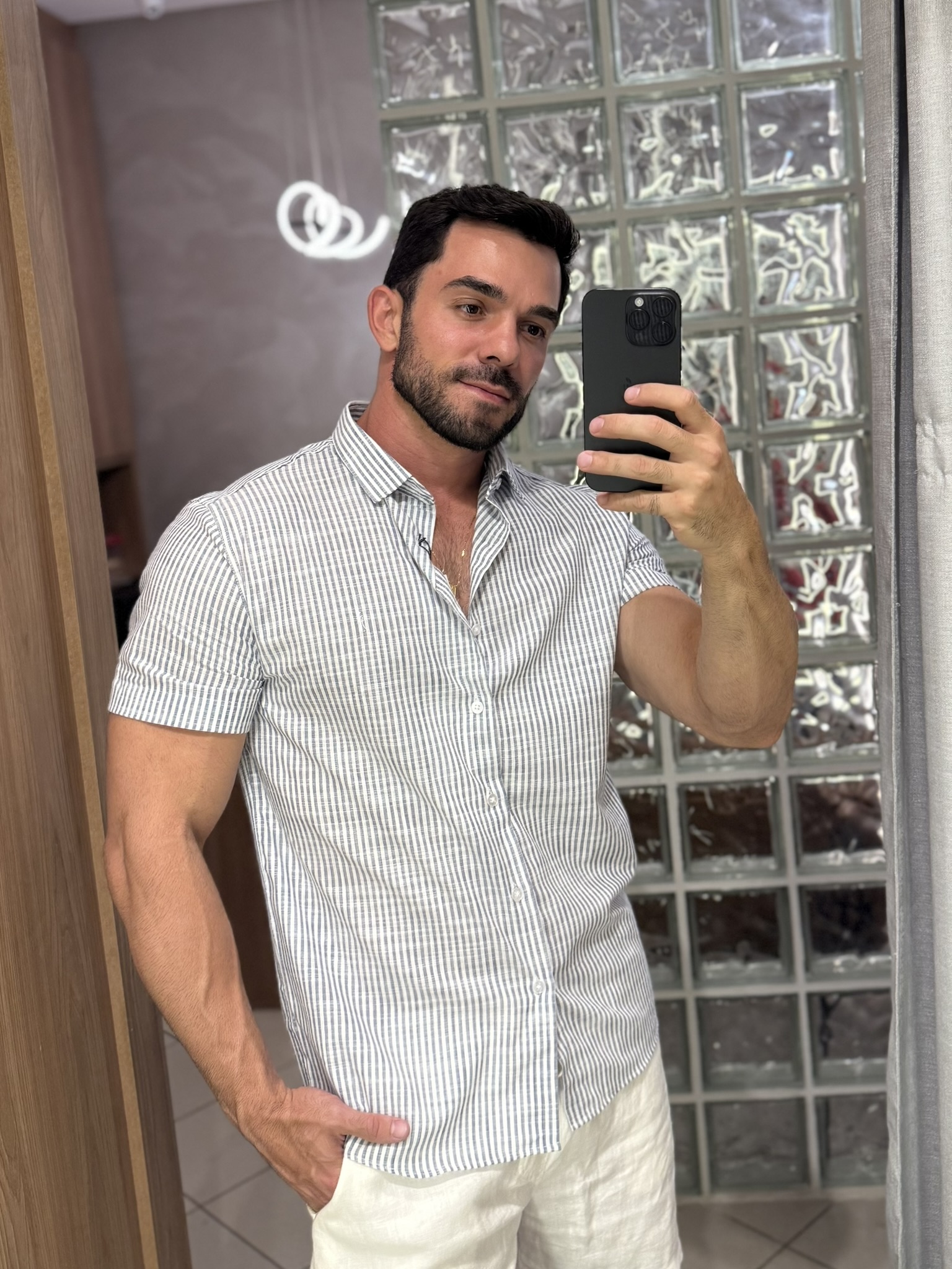Camisa com modelagem versátil e sofisticada. Sua composição é 100% algodão. Com a trama mais aberta trazendo o visual do linho, possibilitando a leveza e o conforto necessários para momentos formais e casuais.
