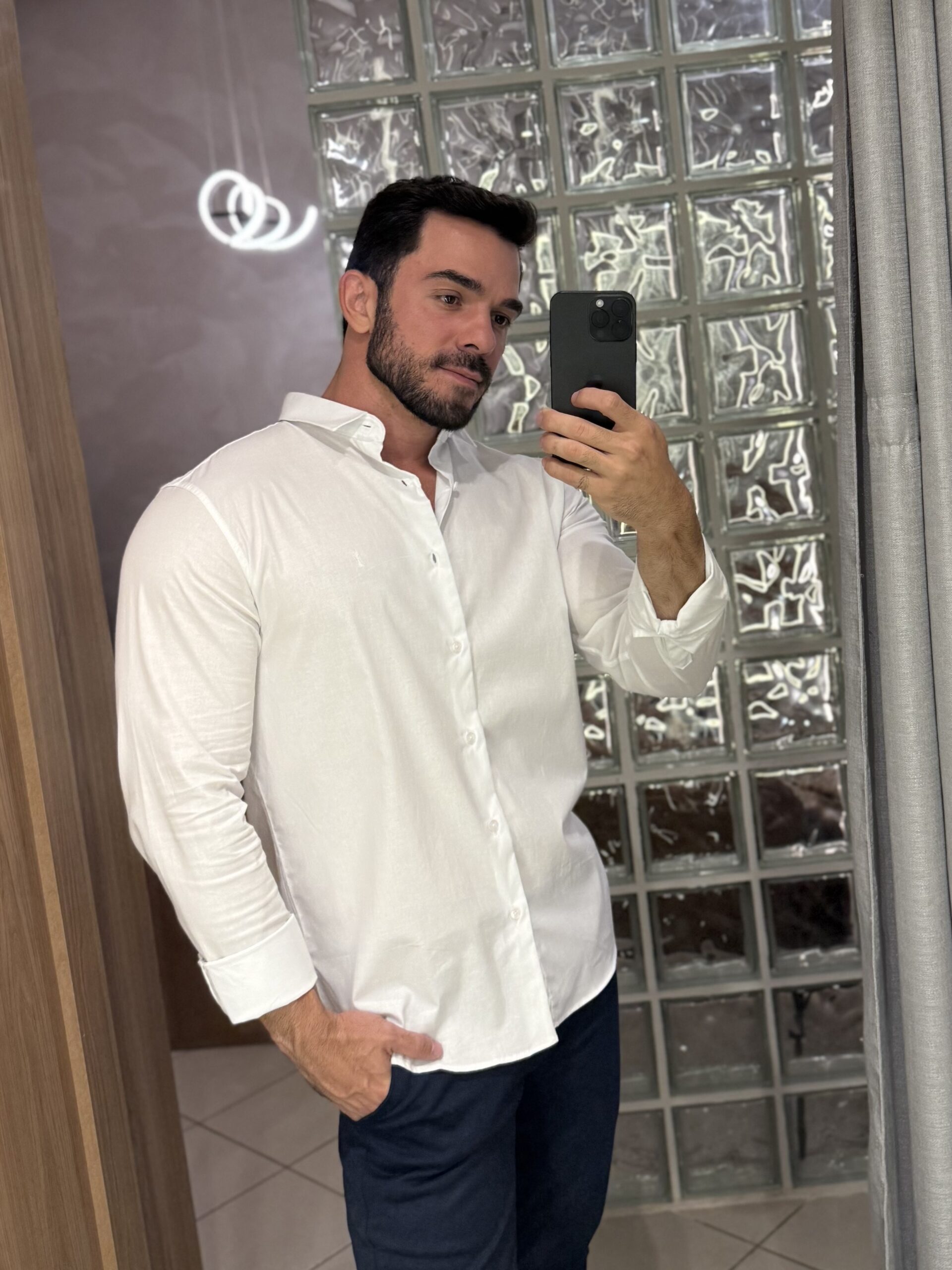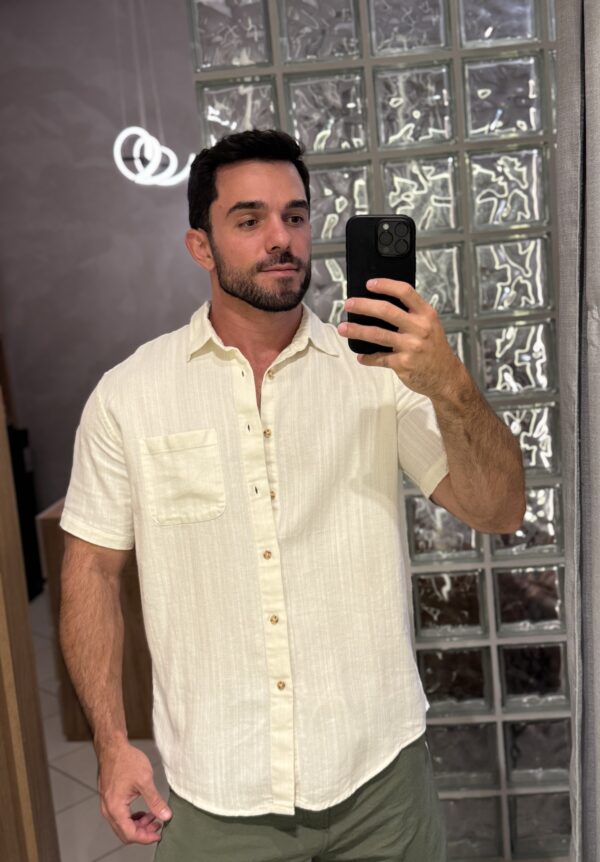 Camisa com modelagem versátil e sofisticada. Sua composição é 100% algodão. Com a trama mais aberta trazendo o visual do linho, possibilitando a leveza e o conforto necessários para momentos formais e casuais.